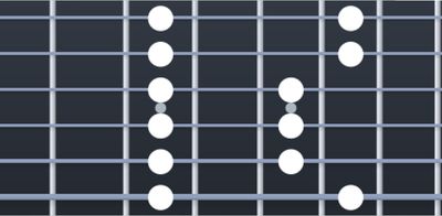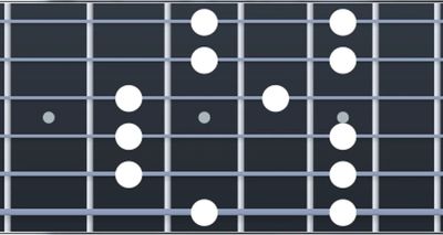 This is how the major pentatonic scale looks like. Like in the case of the minor pentatonic scale, you can move this shape up and down the fretboard because it is the same regardless of tonality.